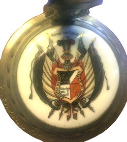 Pewter lid fixed to the stein above. Insert showing student association wappen. Dedication engraving indicating dates of 1893 - 1894.
