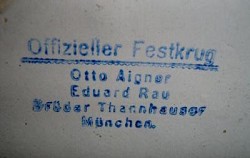 Official 1906 Munich Beer Festival Stein. Joint supplier with Eduard Rau (Kaufingerstraße 9) & Brüder Thannhauser. (Kaufingerstraße 7) ×