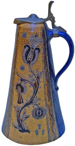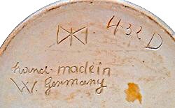 Incised mark #432D plus stylised windmill on featured blue stein above ,in this case with "Handmade in West Germany", for export, which dates in to 1949 - 1970's