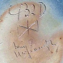Incised mark #432D plus stylised windmill and Mühlendyck's signature.