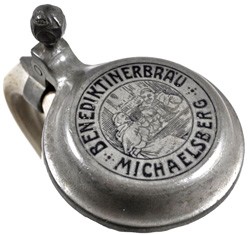 Pewter lid on the above stein with the beer named "Benedictinerbrau, Michaelsberg".