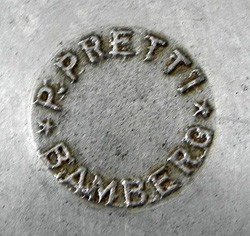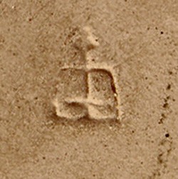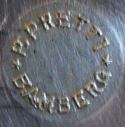 A variation of a cast pewter mark on the underside of a pewter lid.