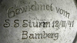 Details of a pewter lid on a Marzi & Remy #2751, "Dedicated by an S.S. Sturm (S.S.unit) 12th March 1941, Bamburg"