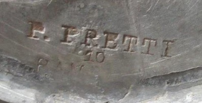 Pewterer's cast mark on the underside of a pewter lid.