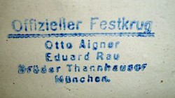Official 1906 Munich Beer Festival Stein. Joint supplier with Otto Aigner (Reichenbachstraße 37, 38) & Brüder Thannhauser. (Kaufingerstraße 16 & 7)