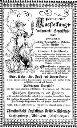 Advertisement from the catalogue of Munich's 3rd International Art Exposition, dated June 1888.