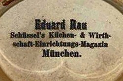 stein bodies with the pewter already installed. He won his title of Hoflieferant to the Bavarian court on the 1st March 1893. Eventually the company passed to his son Karl Rau, but maintained the name of Eduard Rau.