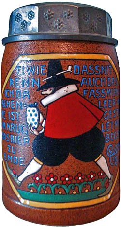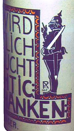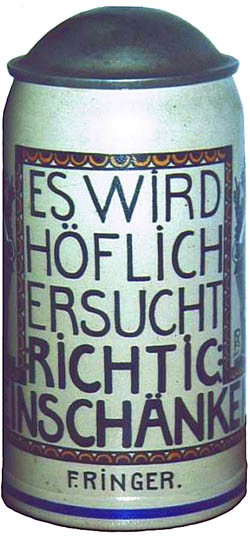 Franz Ringer worked as a graphic designer, painter and sculptor. His creative work reflects the end of historismus and the commencement of the modern era. He not only worked in the traditional styles of the Gothic, Renaissance, Baroque and Biedermeier periods, but also encompassed the contemporaneous style of "Jugenstil" (Art Nouveau). The following were created either by himself, or to his designs: Genre paintings and sculptures, statues, fountains, altars, grave crosses, wall friezes, murals, lead glazing, furniture, lamps, decorations, ceramics for the table, beer steins, guild symbols, May tree figures, shooting targets, wall clock faces, toys, invitations and greetings cards, book dedication inserts, book illustrations, festive gifts and finally gingerbread. Prestigious workshops that used his designs were, in Munich, the "
