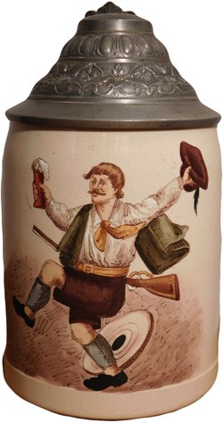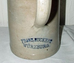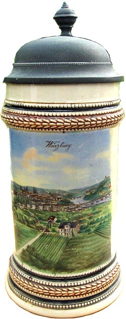 1/2 litre "Black Handled" Marzi & Remy stein, with an illustration of Würzburg, Franz Ruckert's home town. It is fitted with a standard domed lid with an example on the underside, of the ovalised mark complete with eagle, as seen on left. Dated pre 1913.