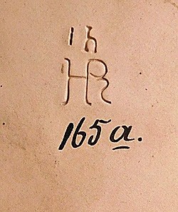Underside of lid on above H&R stein during production at Merkelbach & Wick from latter part of 1886 to 1897. Decoration No. 165a,