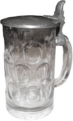 Cast mark including Bavarian Eagle, prior to 1913, on the underside of the lid of an unidentified 0.5 litre glass stein.