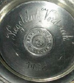 Mark on cast pewter lid, dated 1902.