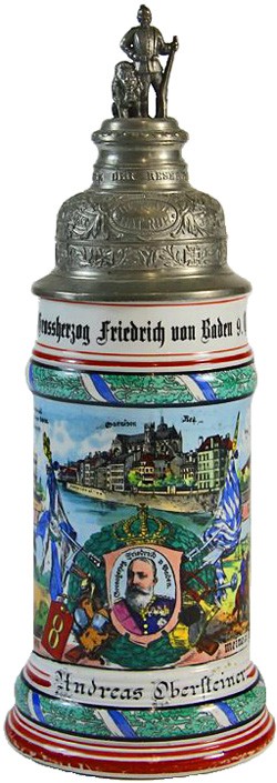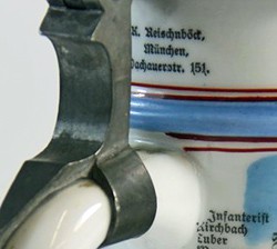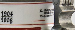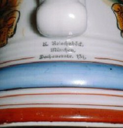 Featured stein showing K. Reischenböck, Dachauerstraße 149, Munich, dated 1906.