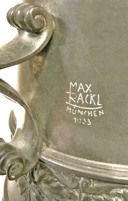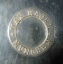 Known dates: ~1900 >1941. Became Max Rackl Zinngießerei after 1914. By 1941 they were trading as Max Rackl Snr. and Jun.