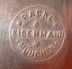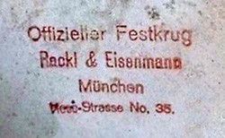 Rackl & Eisenmann (serif text), dated pre c.1914, on underside of lid on featured stein above.