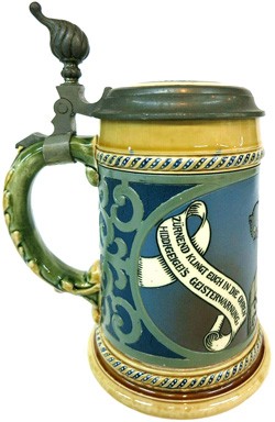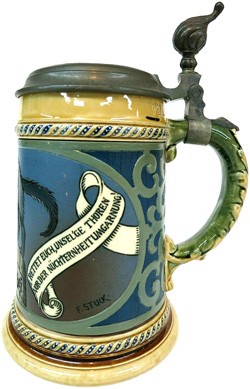 Lid insert on featured stein, top centre. Der Freiherr. The Baron