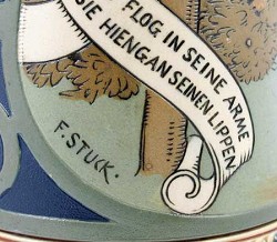 He was rewarded with a knighthood (Ritter von) by Prinzregent Luitpold of Bavaria on the 9th Dec. 1905, which was confirmed in the "nobility directory" on the 2nd Jan 1906, after which time he assumed the name of Franz Ritter von Stuck. He died 30th August 1928, in Munich.