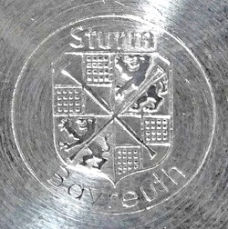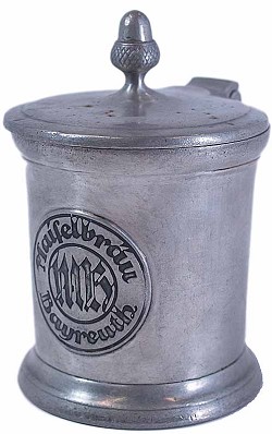 "Bayreuth Eichala" refers to the design of pewter stein, with an acorn finial, unique to Bayreuth, made in various sizes.