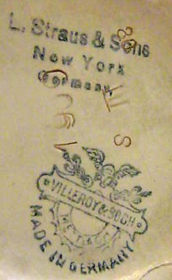 Nathan Straus & Sons inkstamp of a example of the "Old Strasburg" range made by the Villeroy & Boch company, probably dated between 1924 to 1930. Lazarus Strauss also sold this range prior to the company name change.