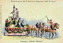 Erinnerung an dad V. Deutsche Sangerfest, 1896, Stuttgart. "Festwagen: Schwab, Volkslied"