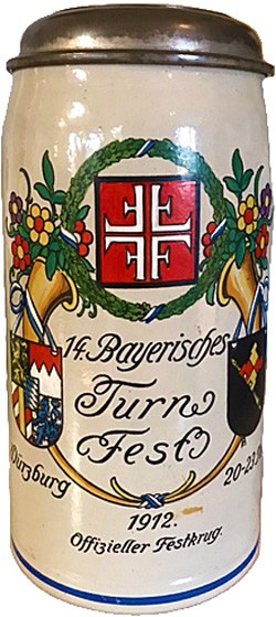 1 Litre Official Festival Stein. 14th Bavarian Gymnastics Festival, held in Würzburg, on the 20th - 23rd July 1912. Manufacturer: Marzi & Remy.