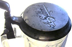 The Sachsenglas? stein above was moulded with the pewterer's name on the base.