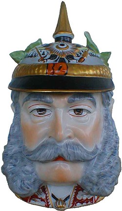 The Heuäcker Brothers founded the company in 1816. Christian Gottfried Schierholz first became a partner when one brother died and then took over ownership of the company at the demise of the second brother in 1818. They pioneered the production of lithophanes in 1849. Christian's sons, Julius & Hugo, took over the management, upon the death of their father in 1851. When Hugo Schierholz died in 1860, his widow Julie & brother Julius, continued control. Up until then, the factory had produced mainly industrial and ordinary domestic porcelain, but after March 1865, they produced only decorative porcelain; e.g. figurines, vases and candlesticks etc. In 1877 the next generation, Max (son of Julius) and Arthur (son of Hugo) took over, however by 1887 Max had left, leaving Arthur with sole ownership. The modeller, Edmund Haase joined the company on 1st April 1884 and by 1900 had created the range of character steins we know today. In 1899 upon the death of Arthur, the business became a public limited company, changing its name to Von Schierholz Porzellan Manufaktur Plaue G.m.b.H. It was then nationalised in 1972 to become VEB Porzellan Manufaktur Plaue. During 1986 to 1990, a limited range of character steins was manufactured for