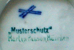 Early penned "hash" mark + Musterschutz, Mark dated 1880 - 1906. Complete with vendor's mark " Martin Pauson, München".