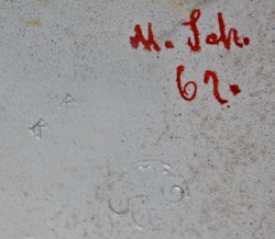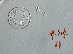 Basemarks showing impressed Merkelbach & Wick, Holwein designed, M.Sch mark and penned decoration number #64 (Stag).