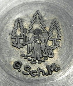 The photo above (the brewery stein) show a pewter mark with the letters 'G.Sch.M.'. I believe this may be the mark of a pewtering company not related to Jakob Reinemann / Reinemann & Lichtinger, and that it does not reference 'Geschützt', but more likely are the initials of a pewterint company in Munich. I have also come across a almost identical mark 'F.Sch.M.', which I believe may be from that same pewterer company.
