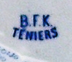 Ink stamp, B.F.K. for Boch Frères Keramis on Delftware, dated not before 1870. Teniers was one of a family dynasty of Flemish painters over four generations, all called David, stretching from 1582 - 1731, originating from Antwerp in what is now Belgium. It is unknown, specifically which Teniers painted this portrait.