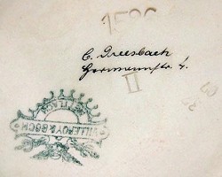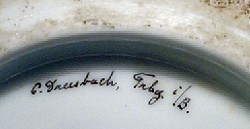 The business of Karl Dreesbach was founded at Universitätstraße 3, 1878. By 1879 Carl Dreesbach was at Schlossbergstraße 28 in 1879, then No. 30 in 1887, then in 1890 No.32. Following that, they were listed in 1909 at Hermannstraße 4. However, in addition, by 1920 there is also a Karl Dreesbach junior, a glass and porcelain decorator, listed at Sautierstraße 24.