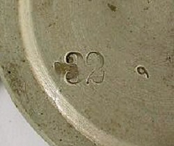 Impressed "32" with "9" or "6" to the side. Proven to be one of Foltz's designs made prior to the 1885 catalogue. Possible dates c.1860 - c.1885.