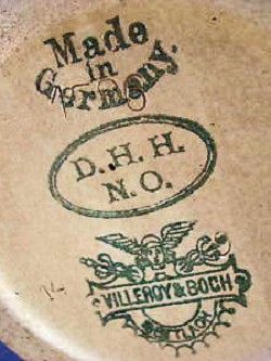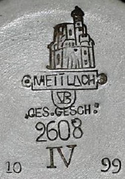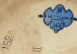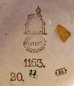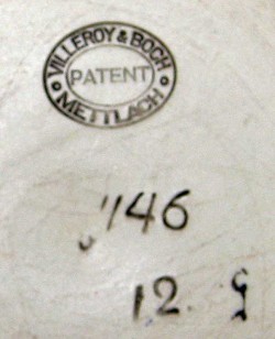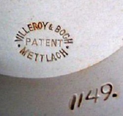 A smaller version has been seen on the base of Villeroy & Boch - Mettlach #216. The smaller version (below) was used between 1844 & 1860.