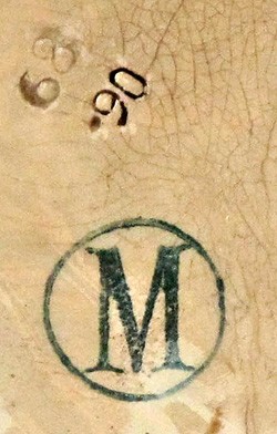 Flasks, similar to the one above, dated 1990, have both an iink stamped "M" inside a circle as shown immediately above, or just an impressed "M".