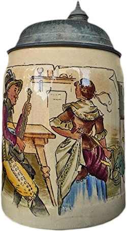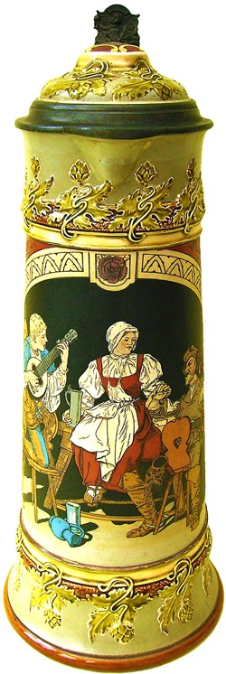 Early Villeroy & Boch - Mettlach #216, dated 1844 - 1st half of the 1870's, complete with "Brauerstern", Brewer's Star lid, has been seen with the four marks immediately below. Thought to have been designed by Ludwig Folz II, it did not appear in the 1885 catalogue.
