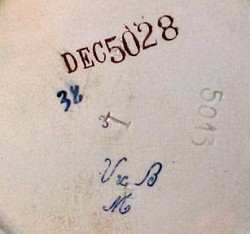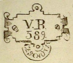 "Plaque" ink stamp. Circa 1888 - 1902. This mark applies only to V.B. #1526 P.U.G pieces, handpainted from a transfer outline.
