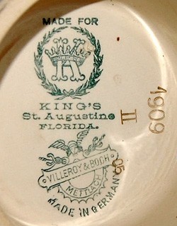 1/2 litre Villeroy & Boch - Mettlach #1909, transfer printed under glaze. Impressed date stamp of 1905. Presumably a commemoration piece for the foundation of the original Spanish settlement in 1565.
