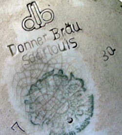 Here is a version of the Saar-Basin Mercury mark. This time a brewery stein of Donner Bräu of Saarlouis impressed on the base, dated 1930.