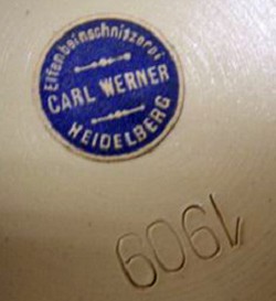 Founded c.1858/59 by Johann Werner at Östliche Hauptstrasse 33. His business was centred around ivory carving. Around 1878 due to renumbering, the address changed to Hauptstrasse 163, although he stayed in the same shop! In 1886 Johann retired and the business was inherited by his son, Karl . Gradually they widened their product range to include carving of amber and
