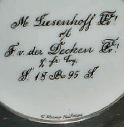 Signature on Villeroy & Boch - Mettlach #1526 1 Ltr, dated 1898.
