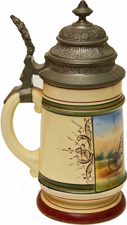 Porcelain stein by August Saeltzer (Martini period), dated circa 1885.