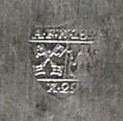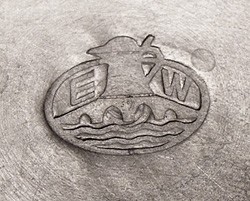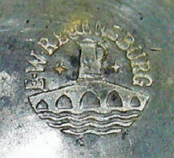 Touch mark on lid of E.W. Regensburg stein, exported to Black, Starr & Gorham and dedicated in October 1955.