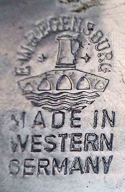 E.W. Regensburg mark, on underside of featured stein lid, dated circa 1950 .