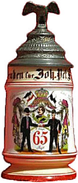 N.B. Pfeifen Fabrik, Köln, on regimental stein above. 7. Cp (7th Company) of the 5th Rheinisches Infanterie Regiment Nr. 65, stationed in Mülheim, dated 1898.