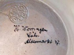 By 1922 Heinrich had died and the company was trading as Heinr. Worringen (Witwe). The year 1927 was the last recorded entry as a porcelain decorator, however the shop with the remaining products is thought to have continued to at least 1939.