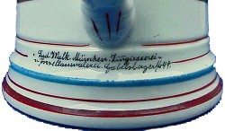 Artist's signature on stein for the König Ludwig Durchschaubild. 10.Infantrie Regiment Prinz Ludwig 11. Comp Ingolstadt 1895 - 1897. "Ludwig Walk. München. Zinngießerei. Gabelsbergerstraße 44".