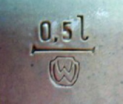 Impressed nested "W"s. C.1960 - 1984, combined with capacity mark.