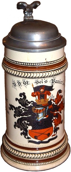 "B.D.St sei's Panier" Student stein. Incidentally the thumb pull is identical to that shown on the lid shown on the right.