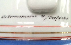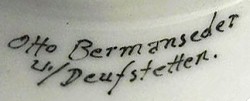 Decorator's signature under the handle of the Shepherd's occupational stein, shown left. "Unterdeufstetten" Nr. Dinkelsbühl.